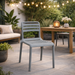 Su respaldo con líneas horizontales y asiento ligeramente curvo brindan una postura cómoda, mientras su diseño limpio y contemporáneo se integra fácilmente en ambientes residenciales o comerciales. Gracias a su material resistente a la humedad y a las condiciones del exterior, es una excelente opción para quienes buscan durabilidad, fácil mantenimiento y versatilidad en un solo producto.